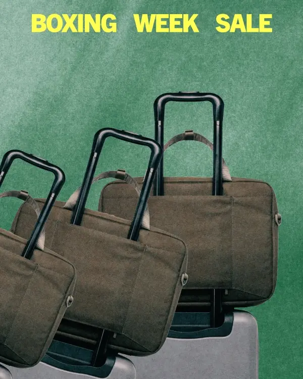 Duffles designed for quick getaways. On sale for a limited time only.